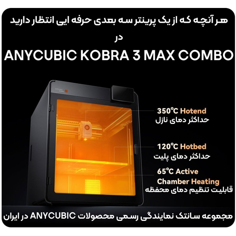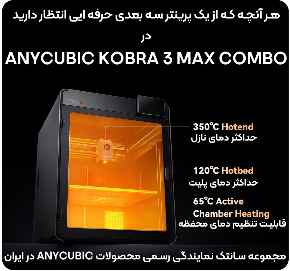 پرینتر سهبعدی Anycubic Kobra S1 Max Combo معرف نسل جدیدی از چاپگرهای حرفهای است که با تکیه بر طراحی مهندسی پیشرفته و فناوریهای مدرن، مرز میان چاپ صنعتی و رومیزی را از میان برداشته است. این مدل با بهرهگیری از سیستم حرکتی دقیق CoreXY، ساختار کاملاً بسته و حجم چاپ چشمگیر 350*350*350 میلی متر، پاسخگوی نیاز طراحان، مهندسان و تولیدکنندگان حرفهای است. هدف اصلی این دستگاه ایجاد تعادلی میان دقت، سرعت و تنوع مواد مصرفی است. از ساخت نمونههای صنعتی و قالبهای دقیق گرفته تا چاپ قطعات تزئینی و چندرنگ، Kobra S1 Max Combo همه را با سهولت و ثبات فوقالعاده انجام میدهد. این پرینتر نهتنها برای پروژههای بزرگمقیاس مناسب است، بلکه در محیطهای خانگی یا استودیویی نیز عملکردی بیصدا، ایمن و پایدار دارد.