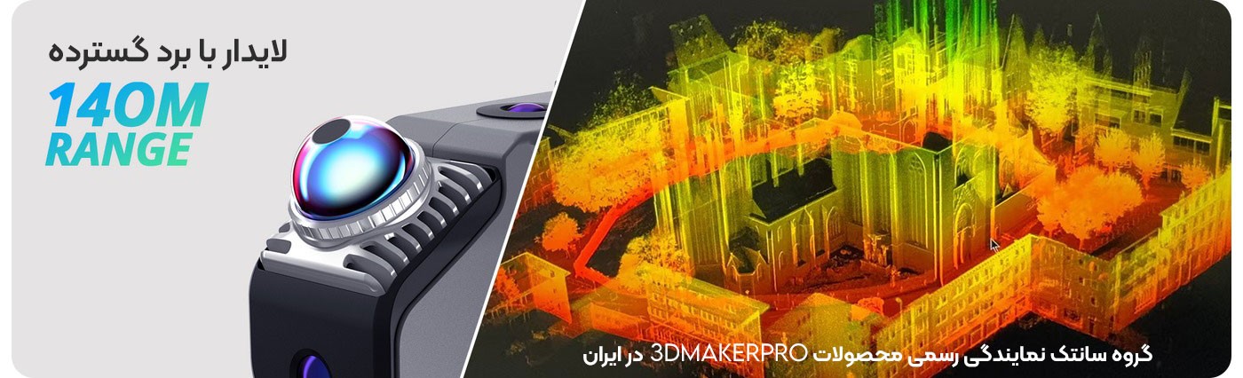کمپانی 3DMAKERPRO اینبار با یک جهش بسیار بلند محصولی بسیار متفاوت از دیگر محصولات خود تولید کرده است , یک اسکنر سه بعدی محیطی با دقت حیرت انگیز و کاربری بسیار آسان که قادر است محیط پیرامون شما را با کمک سنسور لایدار خود با دقت 2 سانتی و حداکثر فاصله 140 متر اسکن کرده و ابر نقاط آن را جمع آوری کند , محصولی که مشابهی در بازار در حال حاضر ندارد و انتظار میرود که کاربردهای بسیار گسترده ایی در صنایع مختلف داشته باشد