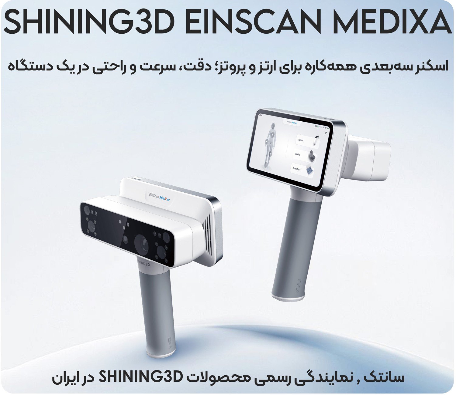 کمپانی شاینینگ تری دی که در زمینه تولید انواع اسکنر های سه بعدی در نیا با فاصله ایی بسیار زیاد از دیگر برند ها جایگاه برترین و متنوع ترین تولید کننده اسکنر های سه بعدی در دنیا را به خود اختصاص داده است یا تولید اسکنر سه بعدی Einscan MediXa بار دیگر گامی بزرگ در تحویل صنعت مهندسی پزشکی برداشته است , این اسکنر کاملا پرتابل که برای تهیه اسکن های سه بعدی با دقت بسیار بالا از انسان ساخته شده است علاوه بر افزایش چشم گیر سرعت عمل واسط کاربری بسیار ساده ایی دارد که به پزشکان و متخصصان اجازه میدهد بتوانند با آسانی از آن استفاده کنند