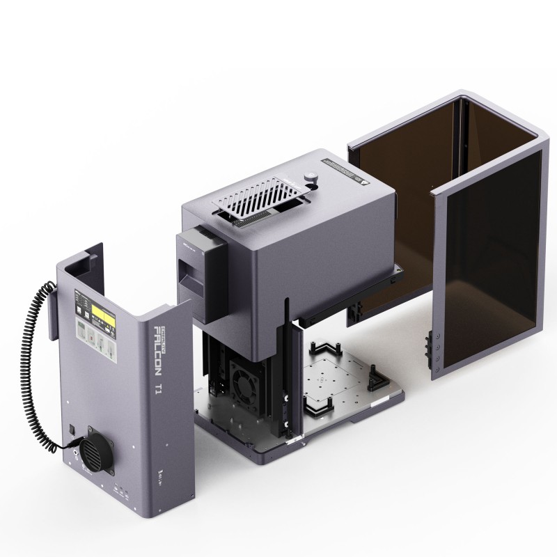 یکی از مهمترین ویژگیهای Falcon T1 استفاده از سیستم لیزر چندگانه 5 در 1 است. در این طراحی نوآورانه، امکان استفاده از ماژولهای مختلف لیزر فراهم شده است تا دستگاه بتواند مواد مختلف را با بهترین کیفیت پردازش کند.